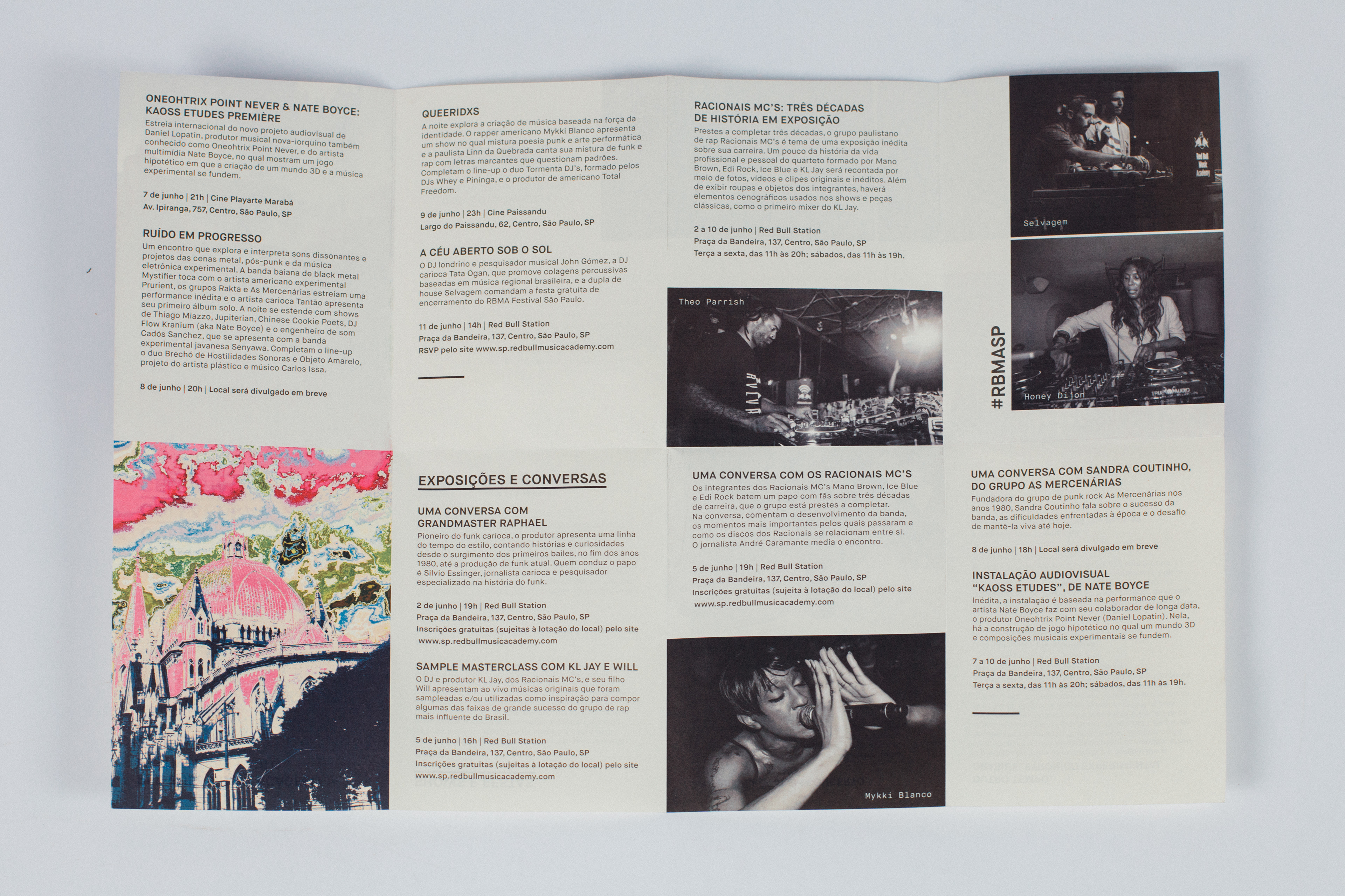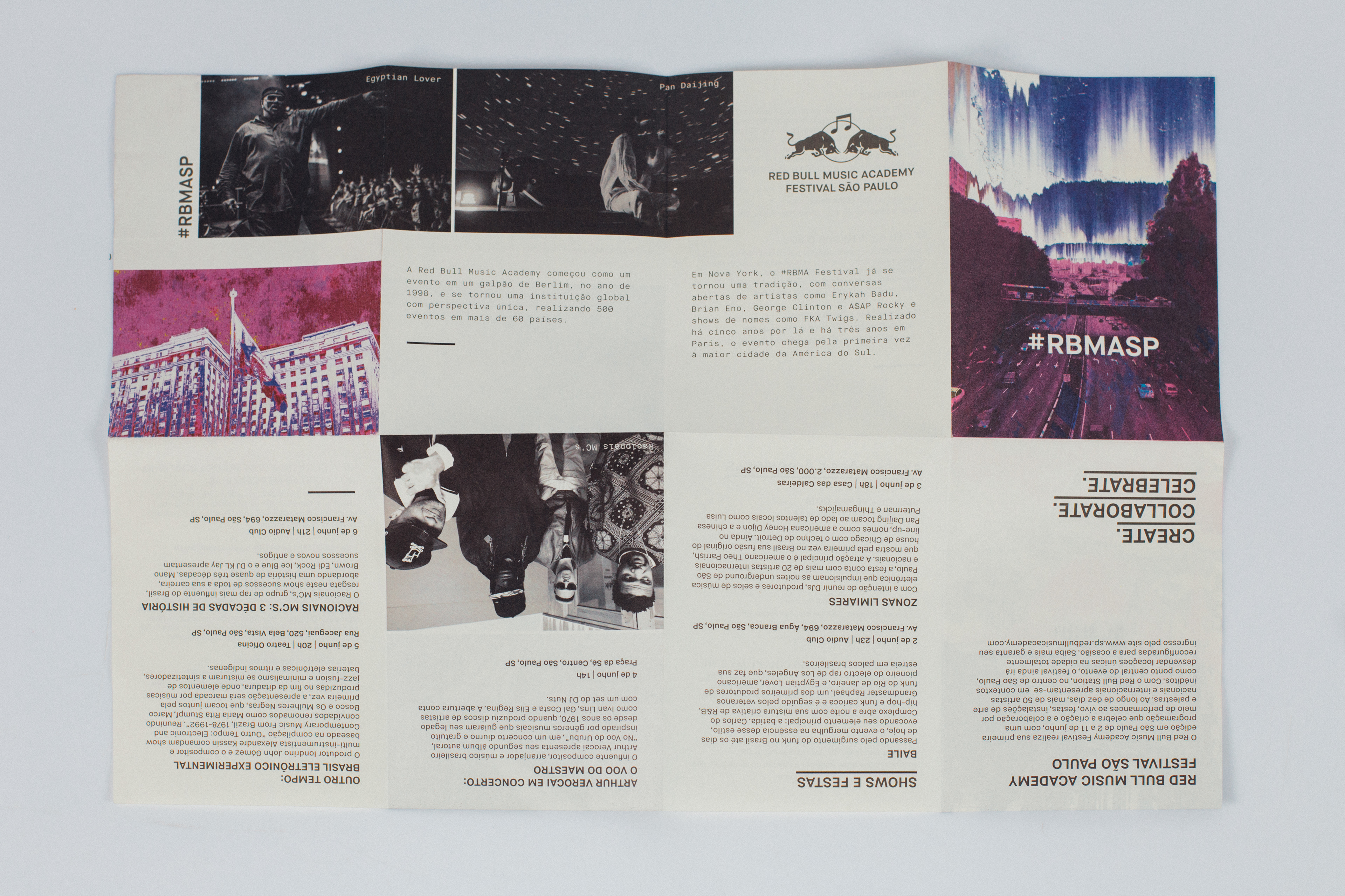 (portuguese-br) Do dia 02 a 11 de junho, foi realizado na cidade de São Paulo, o Red Bull Music Festival, evento realizado desde 1998, contando com edições em Nova Iorque, Paris, Tokyo e Montreal, que desbrava a cultura da música nacional e internacional, com palestras, exposições e shows. Como artistas observadores submersos na megalópole, fomos convidados a desenvolver a identidade visual do evento, partindo do conceito de "Caos Harmônico" inserido na cidade de São Paulo.